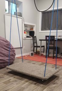 When I first decided I was going to convert our garage into a play room/therapy room for my private OT practice, I knew for sure that I wanted a platform swing. Well if you have ever looked to purchase a platform swing, they are not actually easy to find and very expensive.